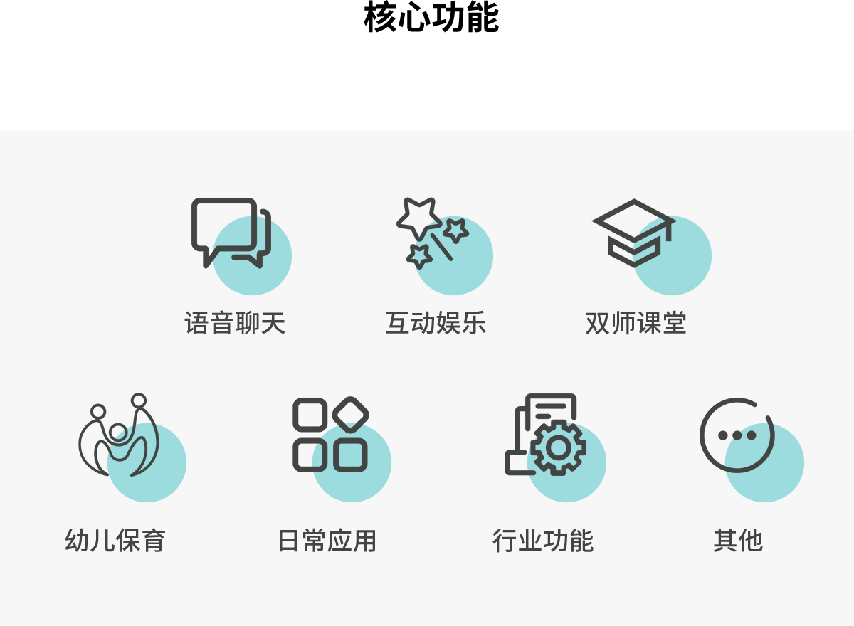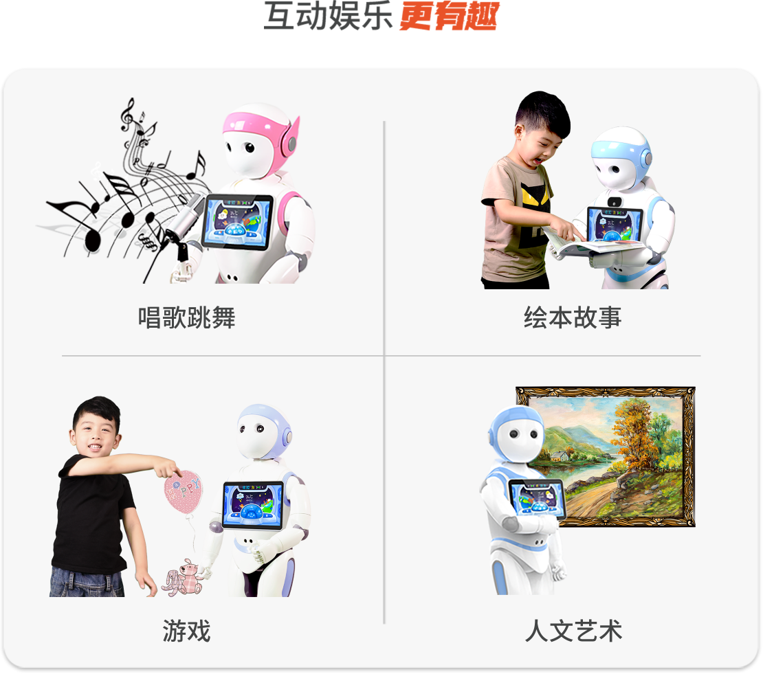 | 功能模式 | 支持学习、游戏、国学、编程器、音乐、视频、商城、相机、相册、日历、益智、 童信、故事等基础功能;支持:石头剪刀布、漫步、转起来、跟我走、接鸡蛋等 |