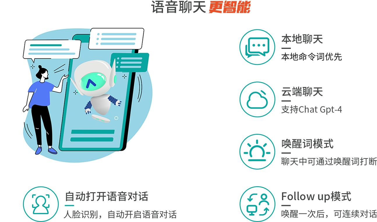 | 大语言模型 | 支持大语言模型对话功能,更智能化交互逻辑 |